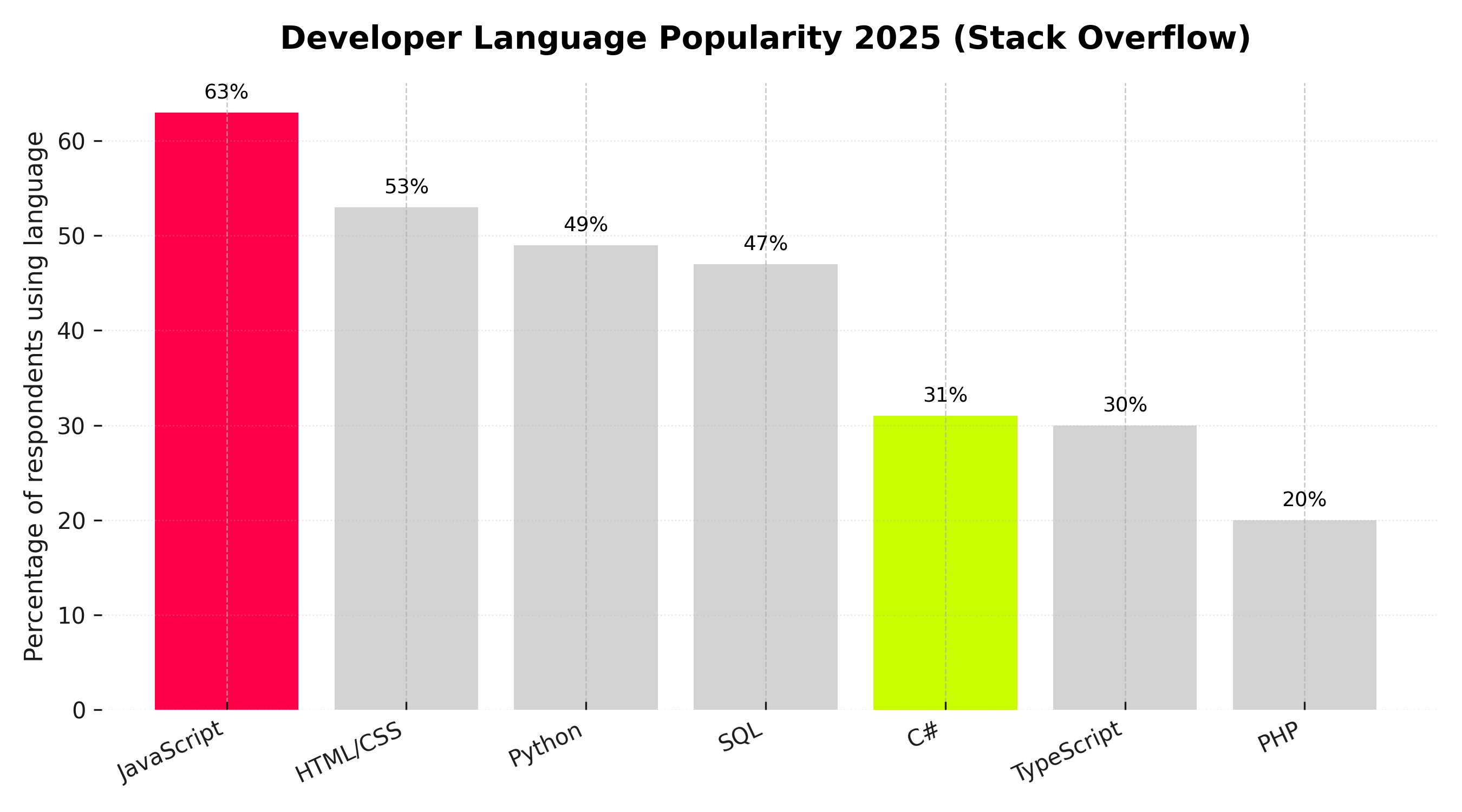 C# still plays a key role in enterprise and Microsoft-heavy environments. However, its developer base is smaller than that of JavaScript frameworks. This difference helps explain why platforms like WordPress and other JavaScript-based systems tend to evolve more rapidly. enterprise and Microsoft-based environments. However, its developer pool is smaller than that of JavaScript frameworks. This gap helps explain why platforms like WordPress and JavaScript-based systems often evolve more quickly.