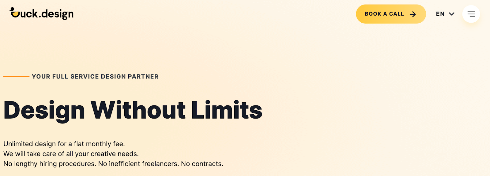 Duck.design is another UK-based website design agency that chooses to offer subscription plans over custom pricing, making it a good choice if your budget is firmly fixed. They offer a full suite of design solutions, covering everything from branding to animation.